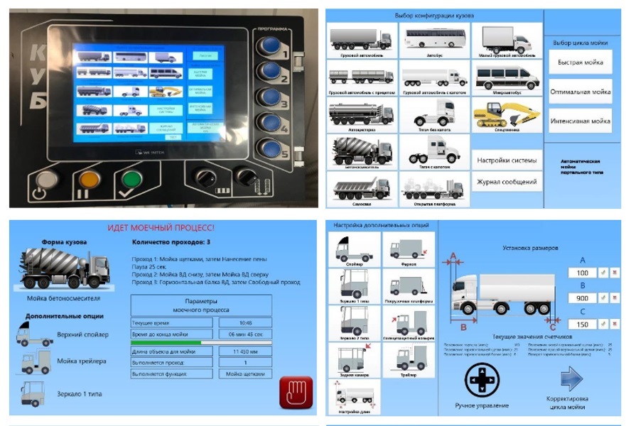 - Пульт управления роботом с изменением порядка включения и выключения режимов мойки + отчетность с указанием даты и времени;